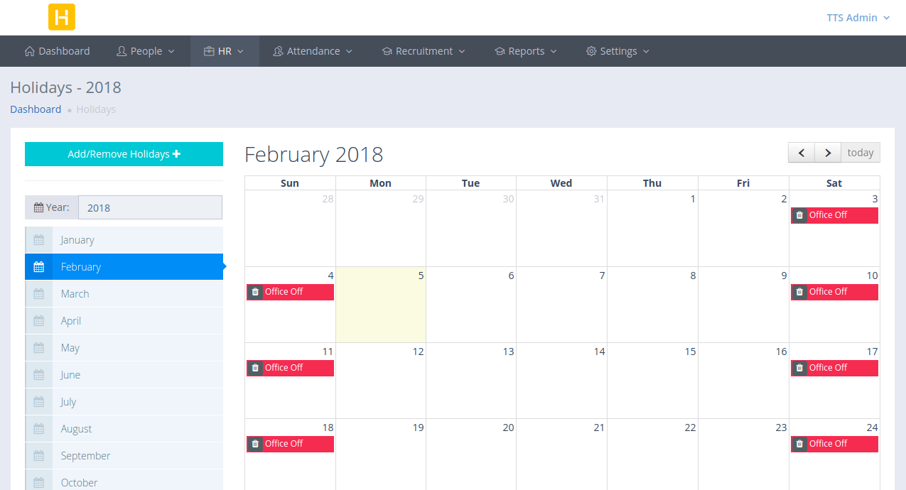 Company Holidays are also now very easy to manage. Any holidays for the current year can be pre-planned and added. Employees can see all the upcoming holidays on their dashboard and make plans accordingly.